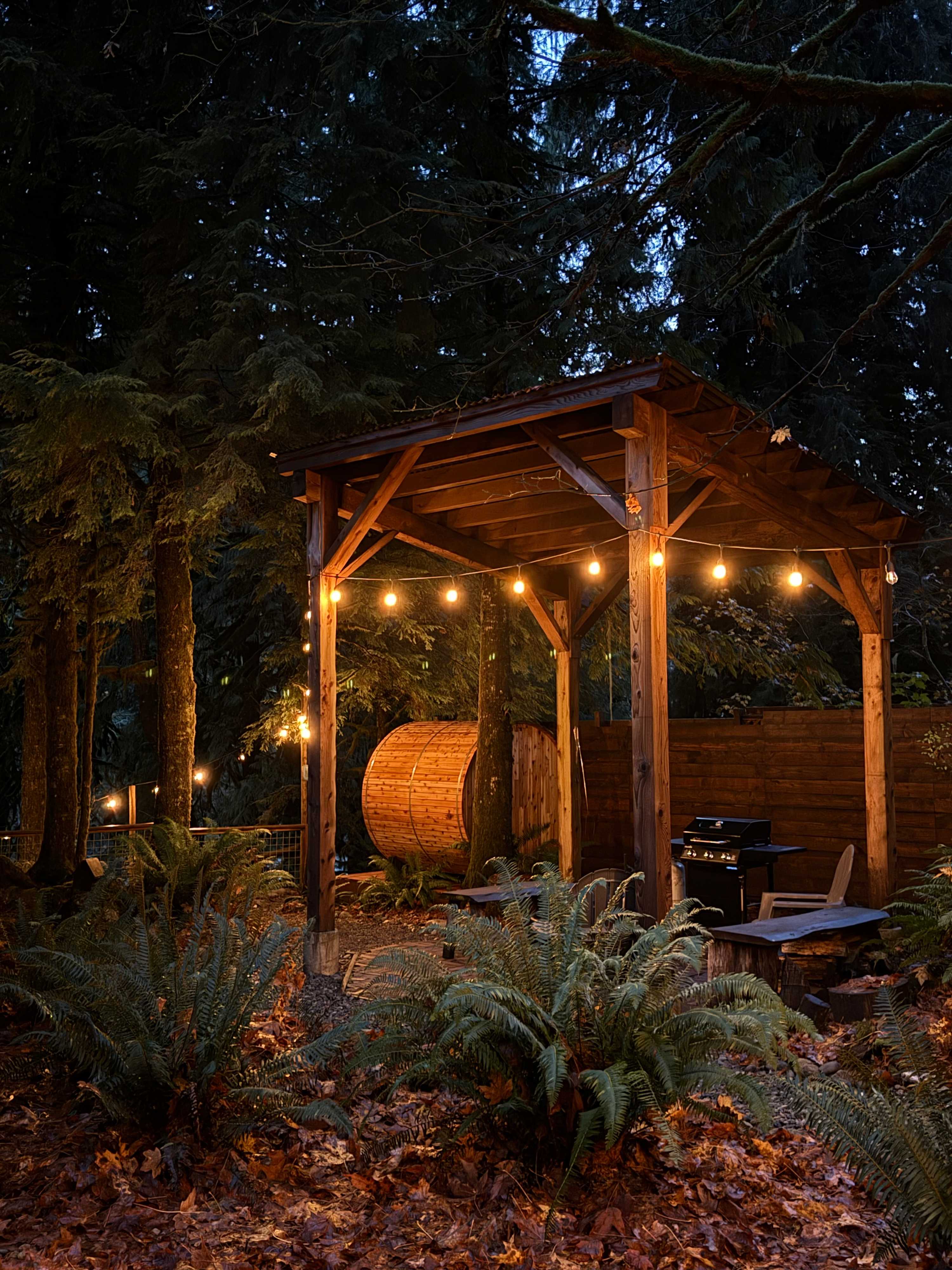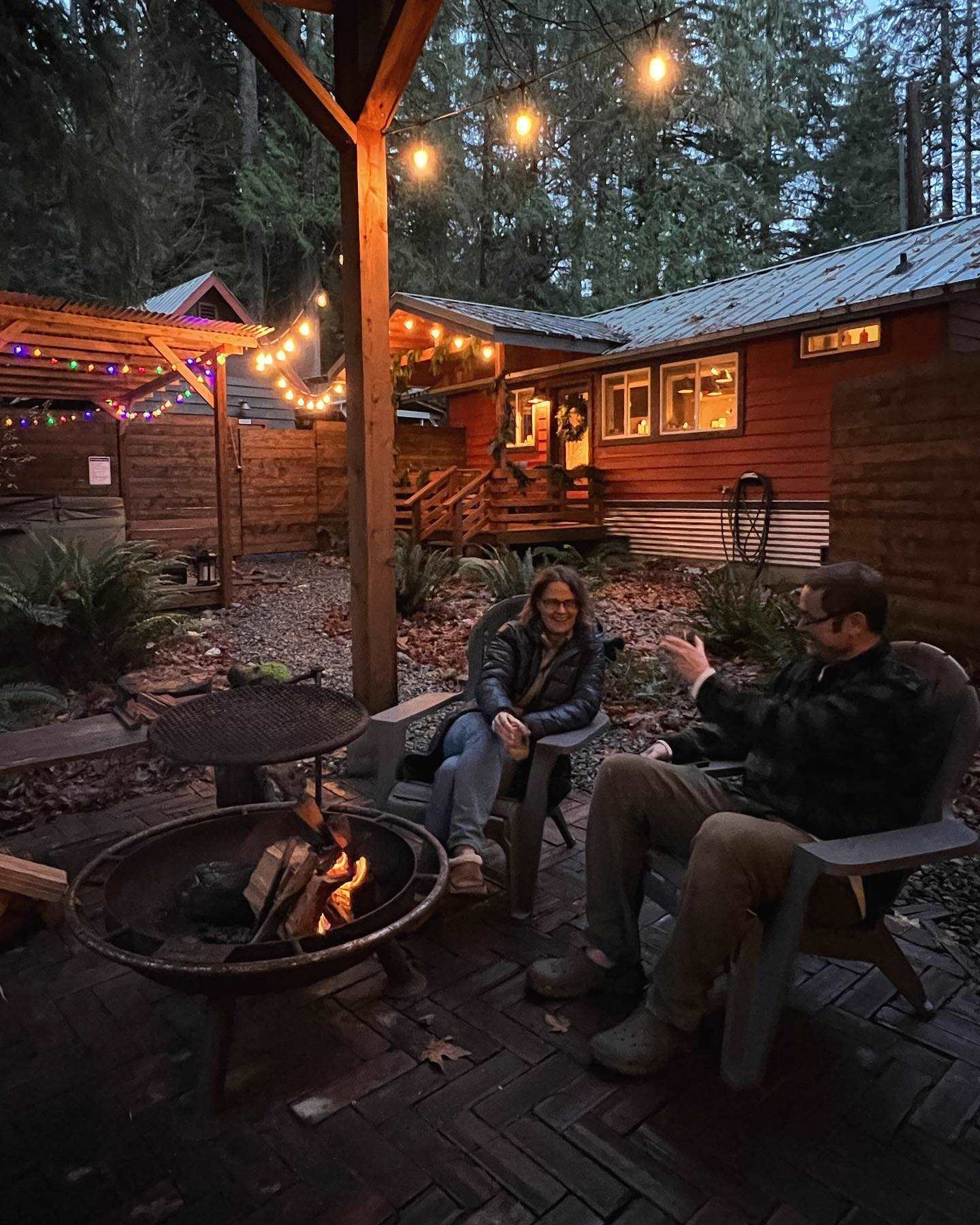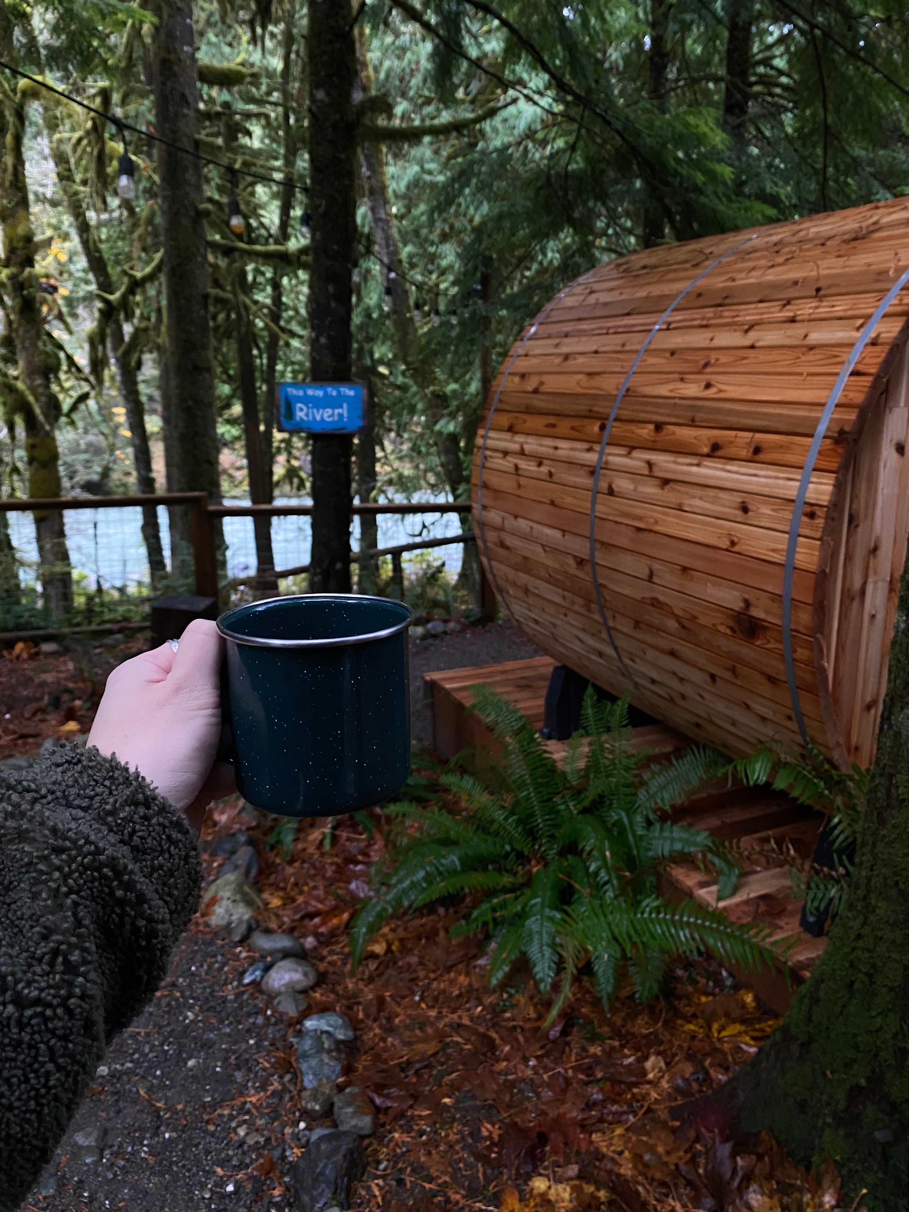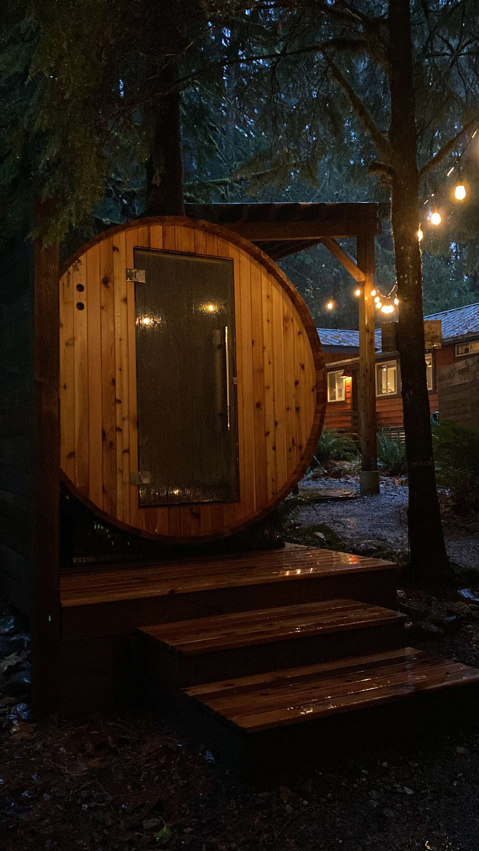 •Outdoors: private yard with hot tub, river-view sauna, covered firepit beneath maples & firs