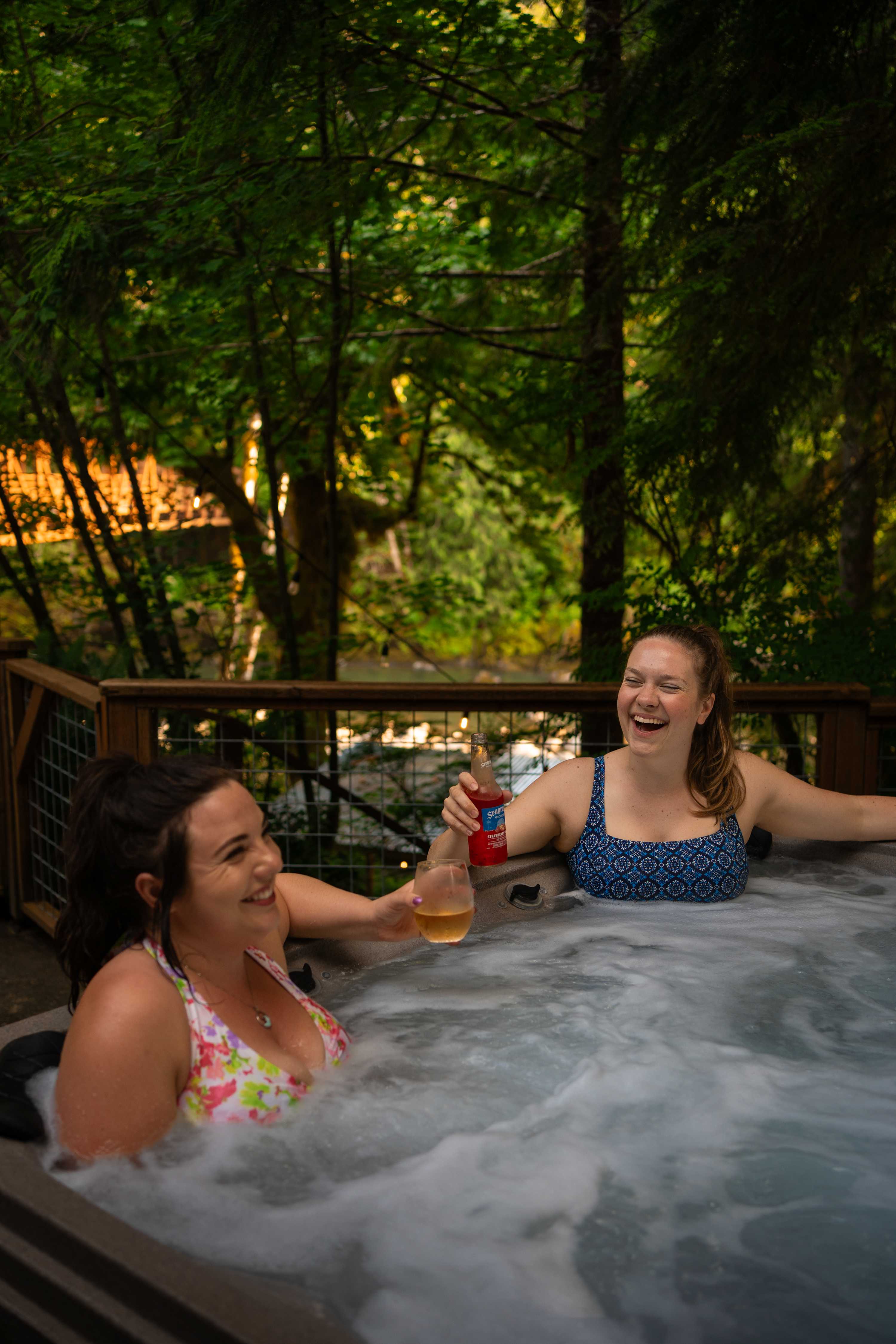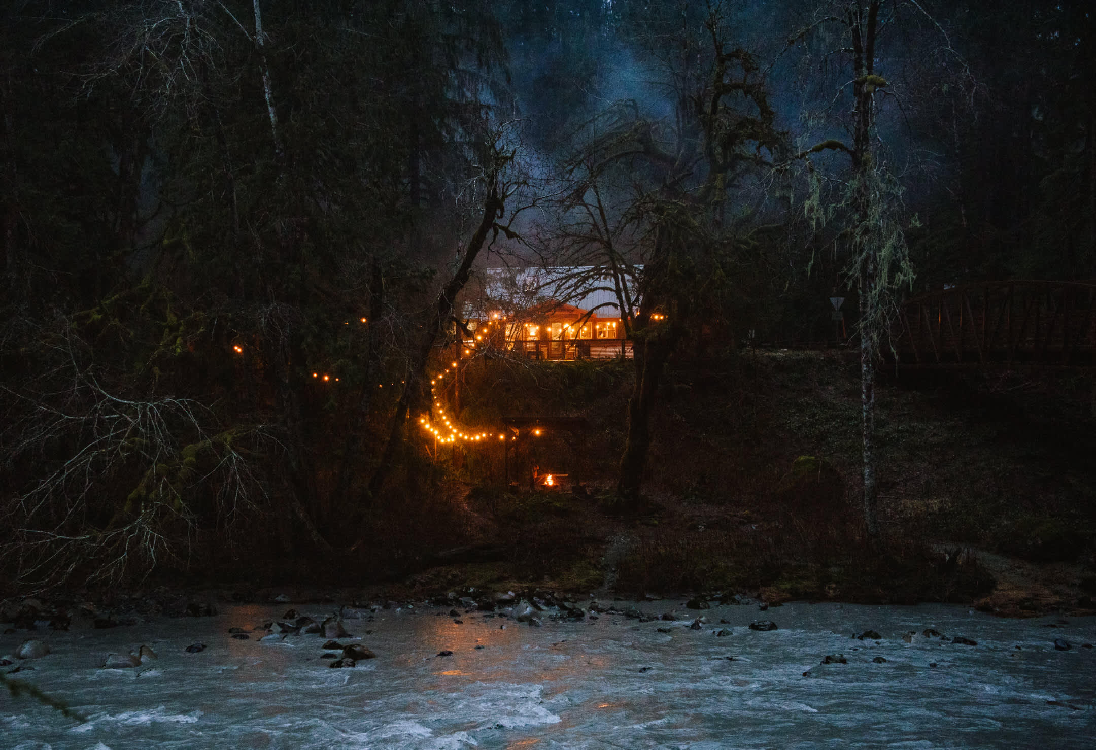 •Outdoors: patio hot tub with chiminea overlooking the river; private covered firepit on the riverbank
