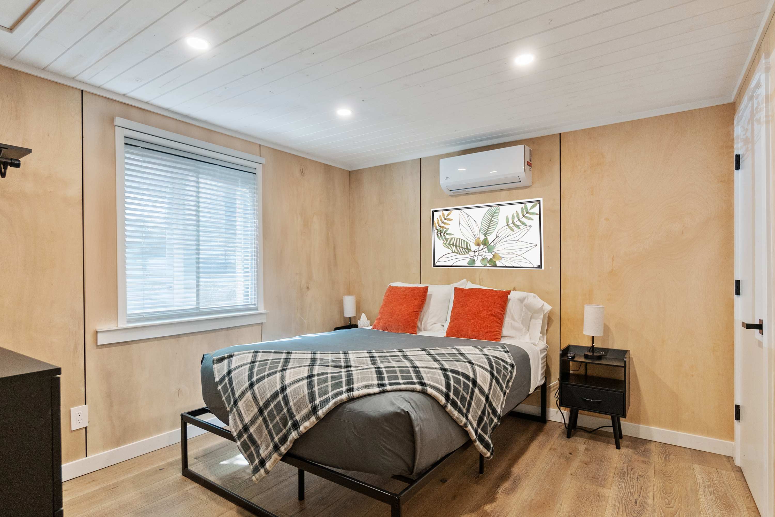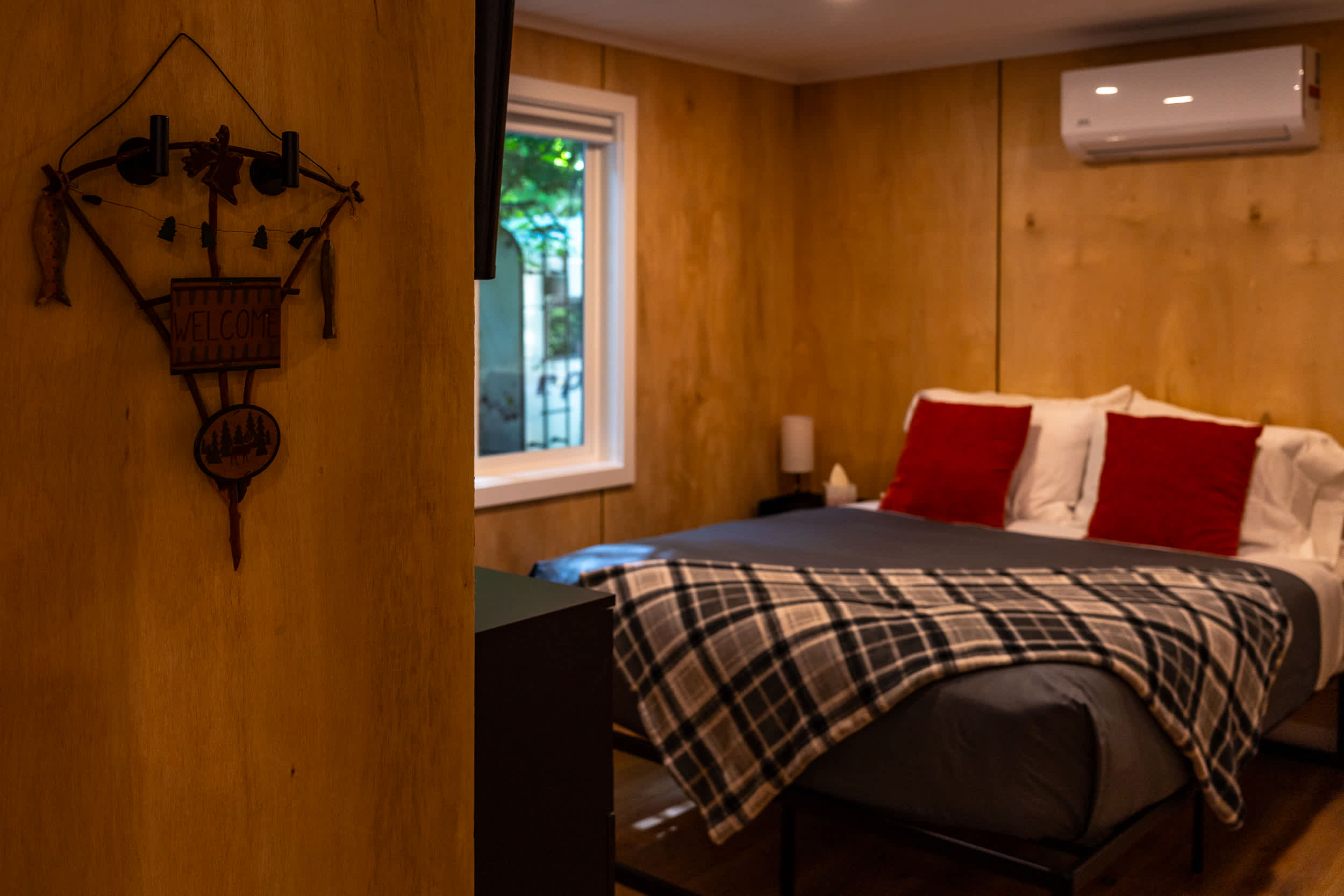 •Cabin (sleeps 5): queen bedroom on main; upper bedroom with queen + twin; large living room; dining room with big table