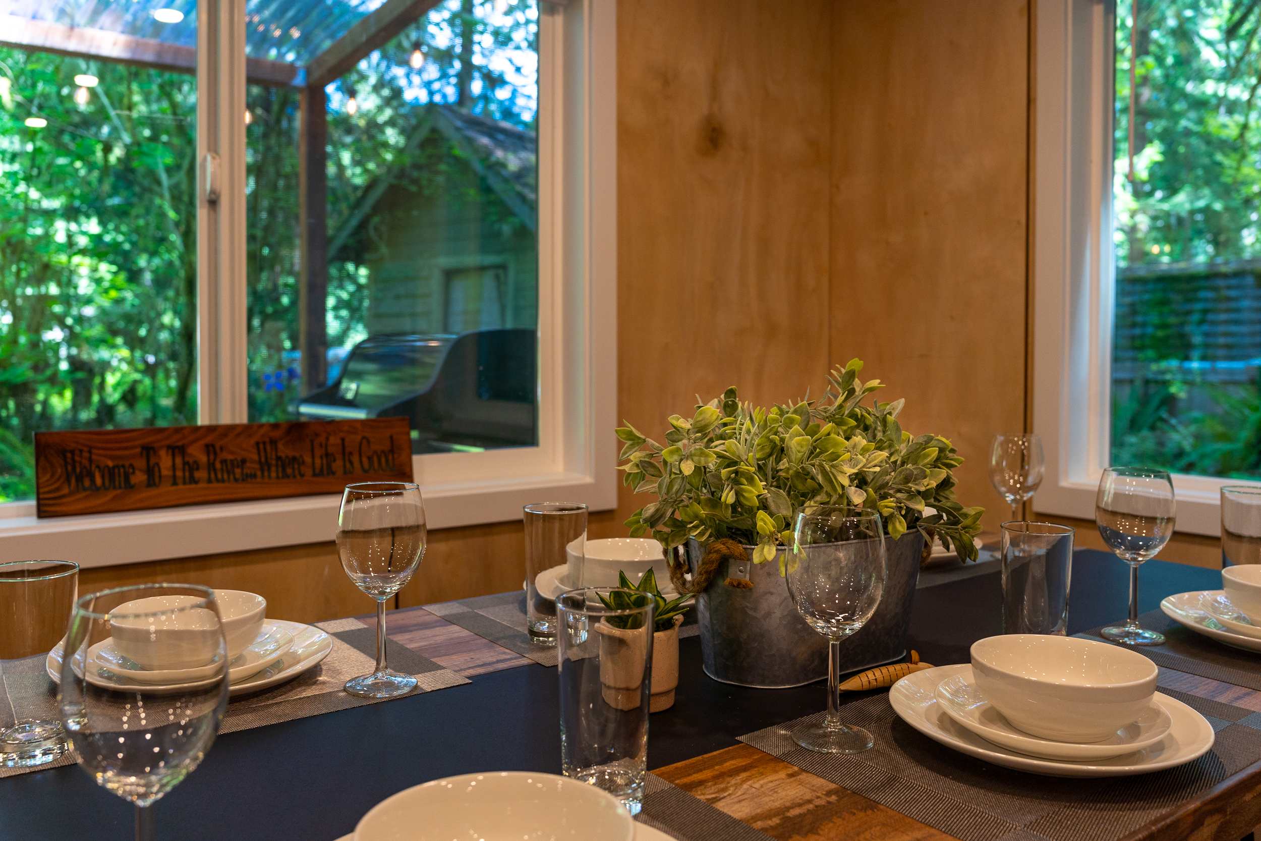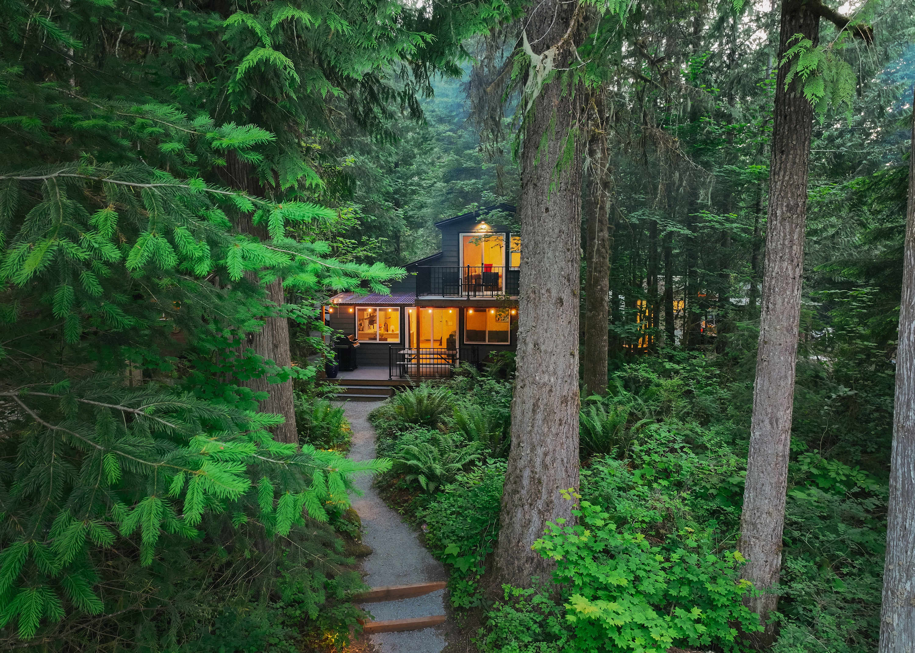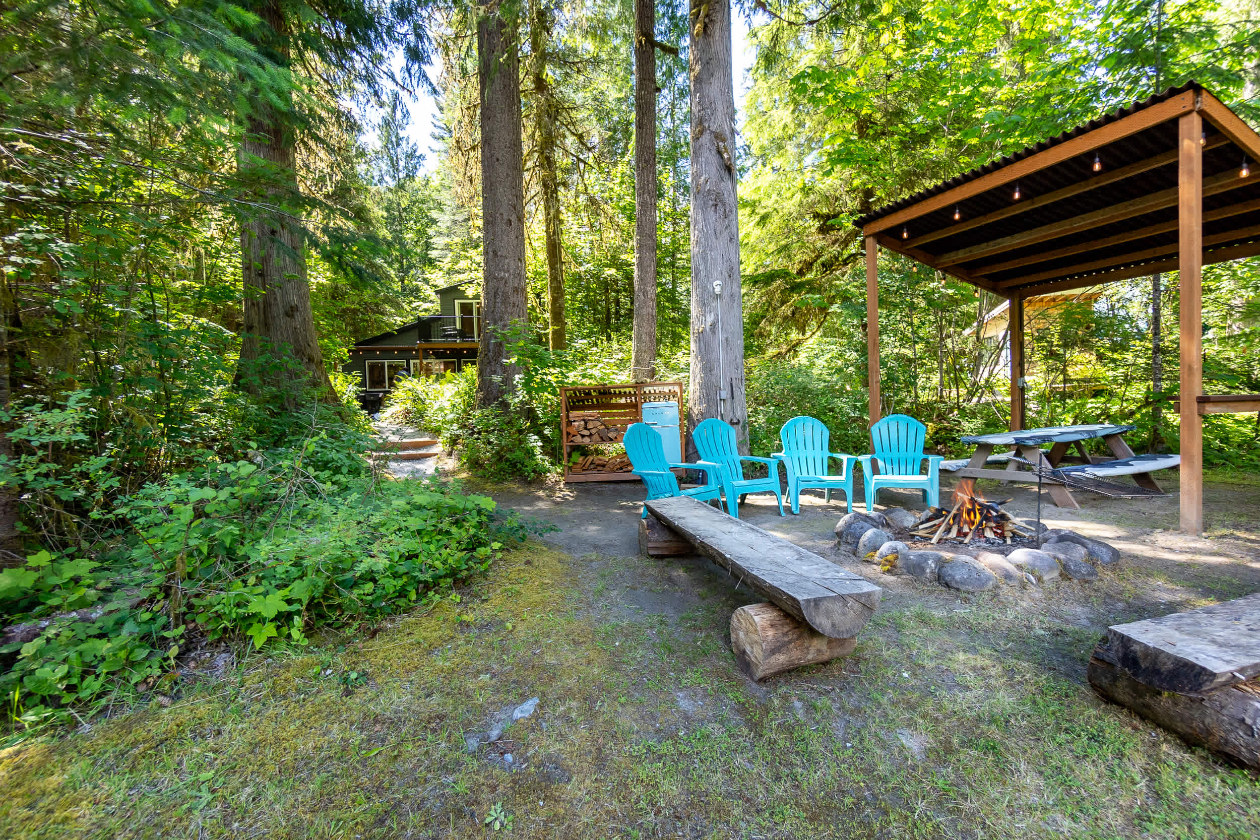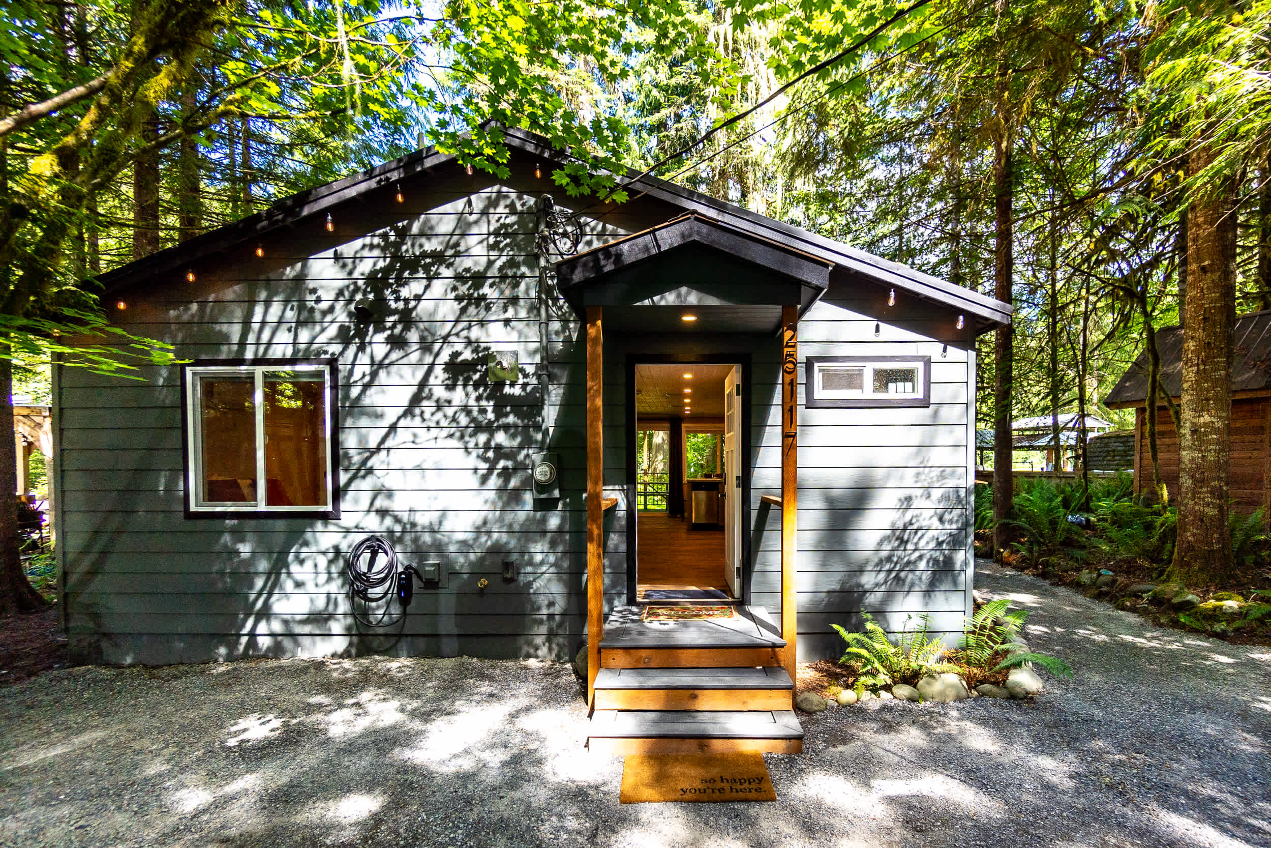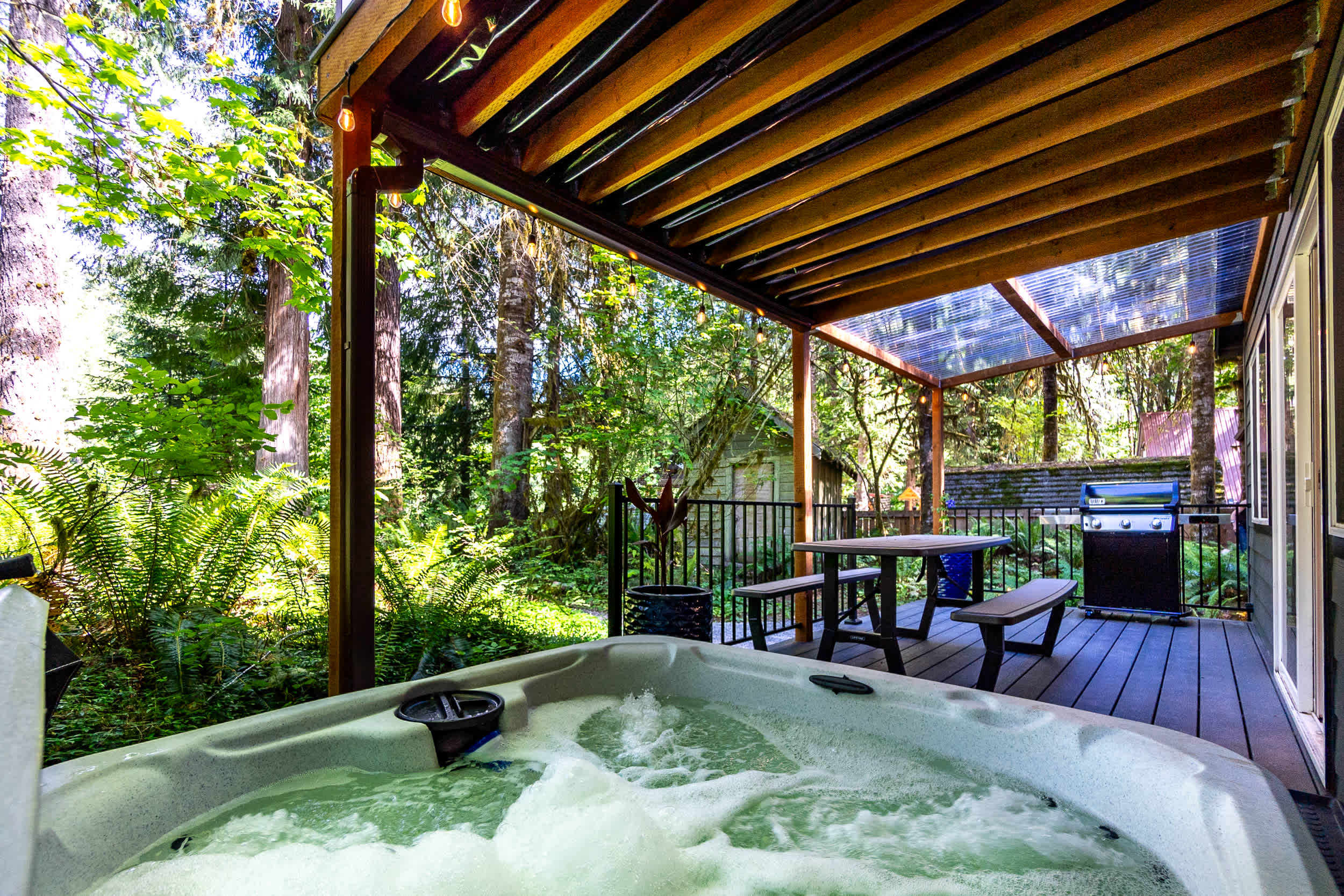 Crisp air, roaring Sauk River, and hot-tub steam—your North Cascades basecamp near Darrington. Grill on the deck, gather at the riverside firepit, and wake to mountain views. Main cabin sleeps 5 (optional second cabin adds up to 2). Full kitchen, fast Wi-Fi, trailheads minutes away. Book fall dates now—best midweek rates.