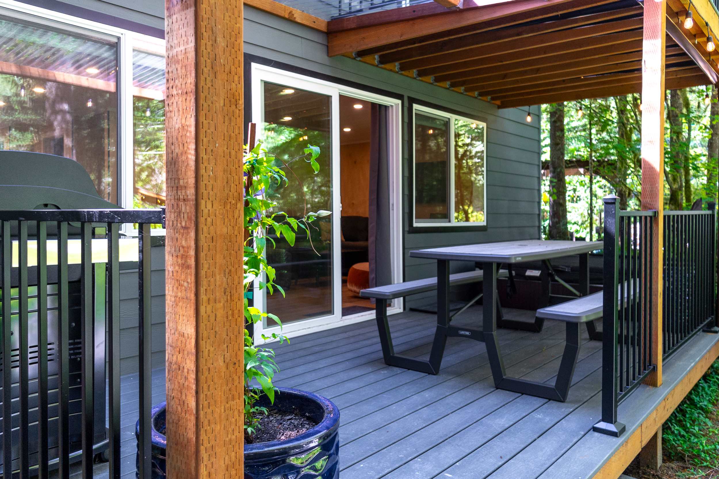 •Outdoors: deck with gas grill, hot tub, riverside firepit + private river access