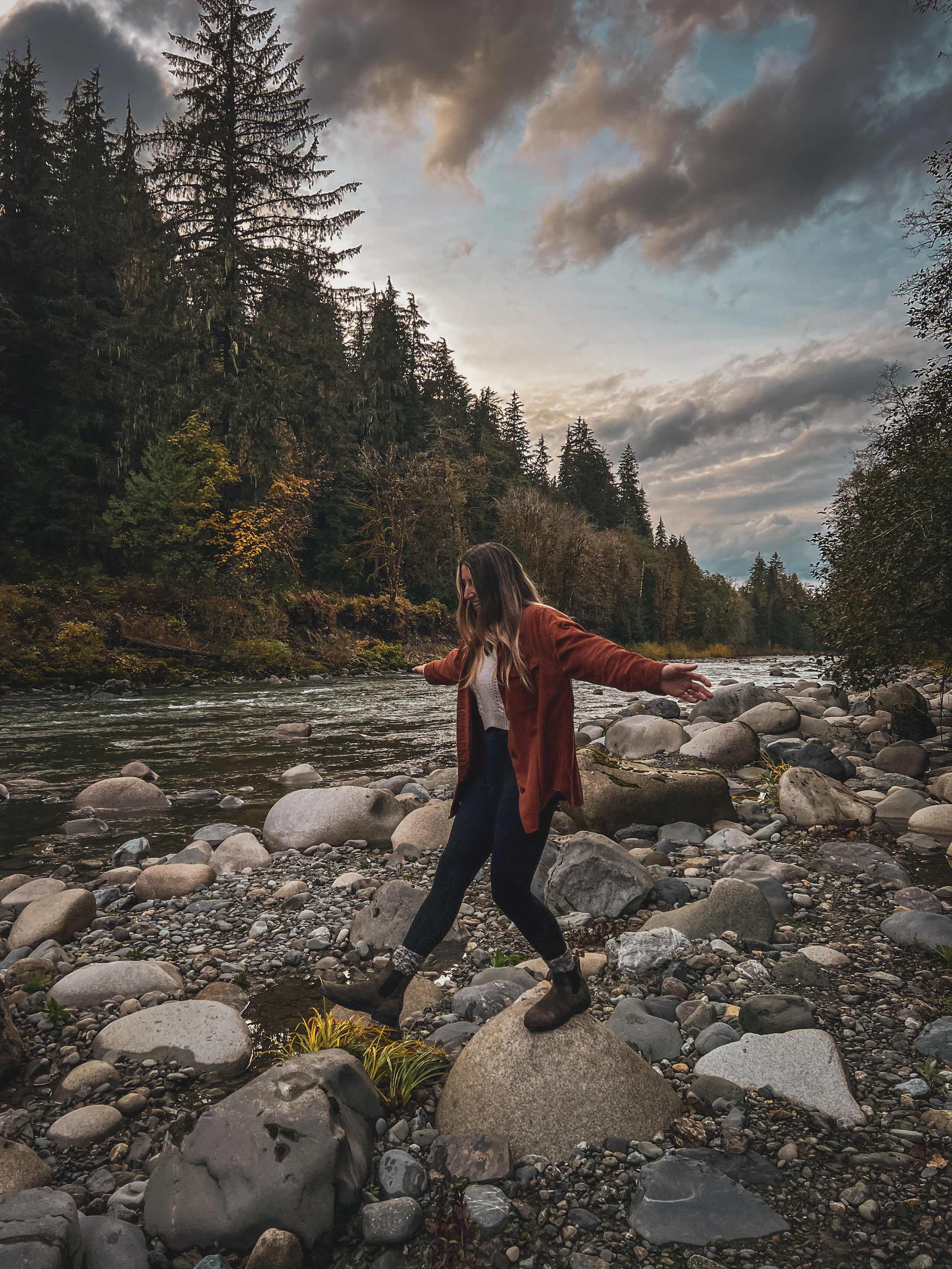 Maple canopy, river soundtrack, river view stone-patio hot tub and barrel sauna. This renovated Tudor cottage puts you steps from the Stilly with a firepit overlooking the water and a grand fireplace inside. Minutes to Lake 22, Heather Lake, and Pilchuck. Fast Wi-Fi, full kitchen. Book winter dates now—best midweek rates.