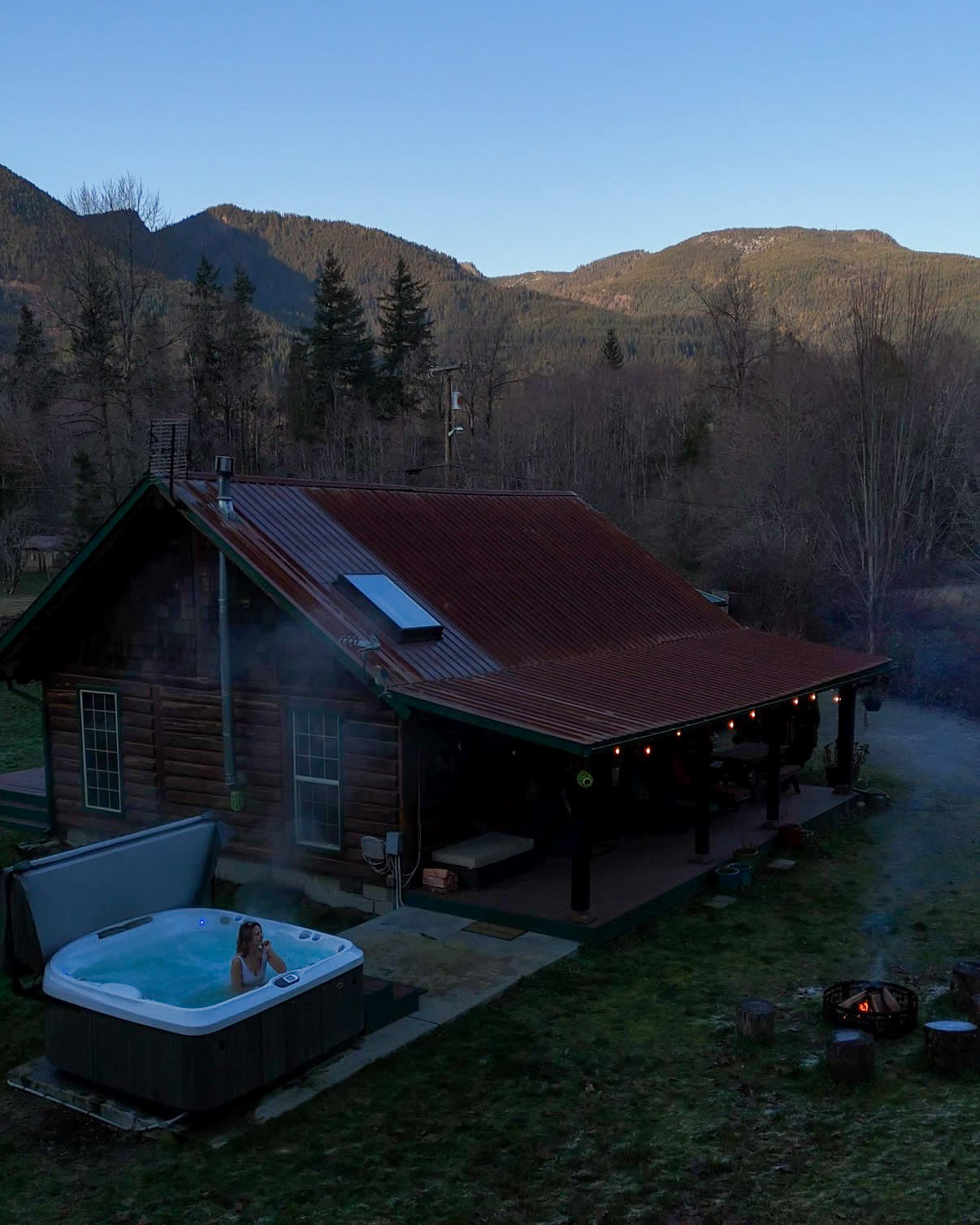 •Private hot tub for evening stargazing; covered porch hang-out