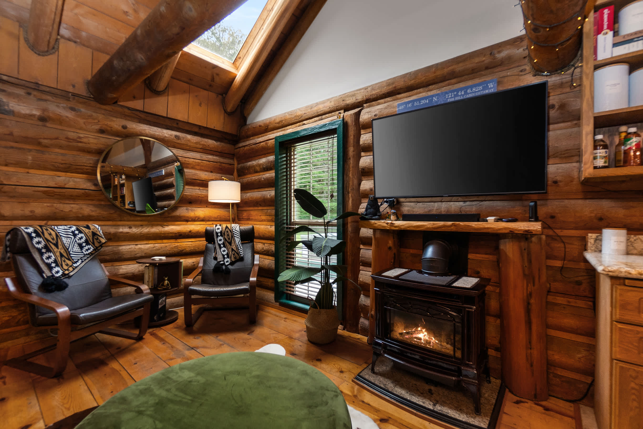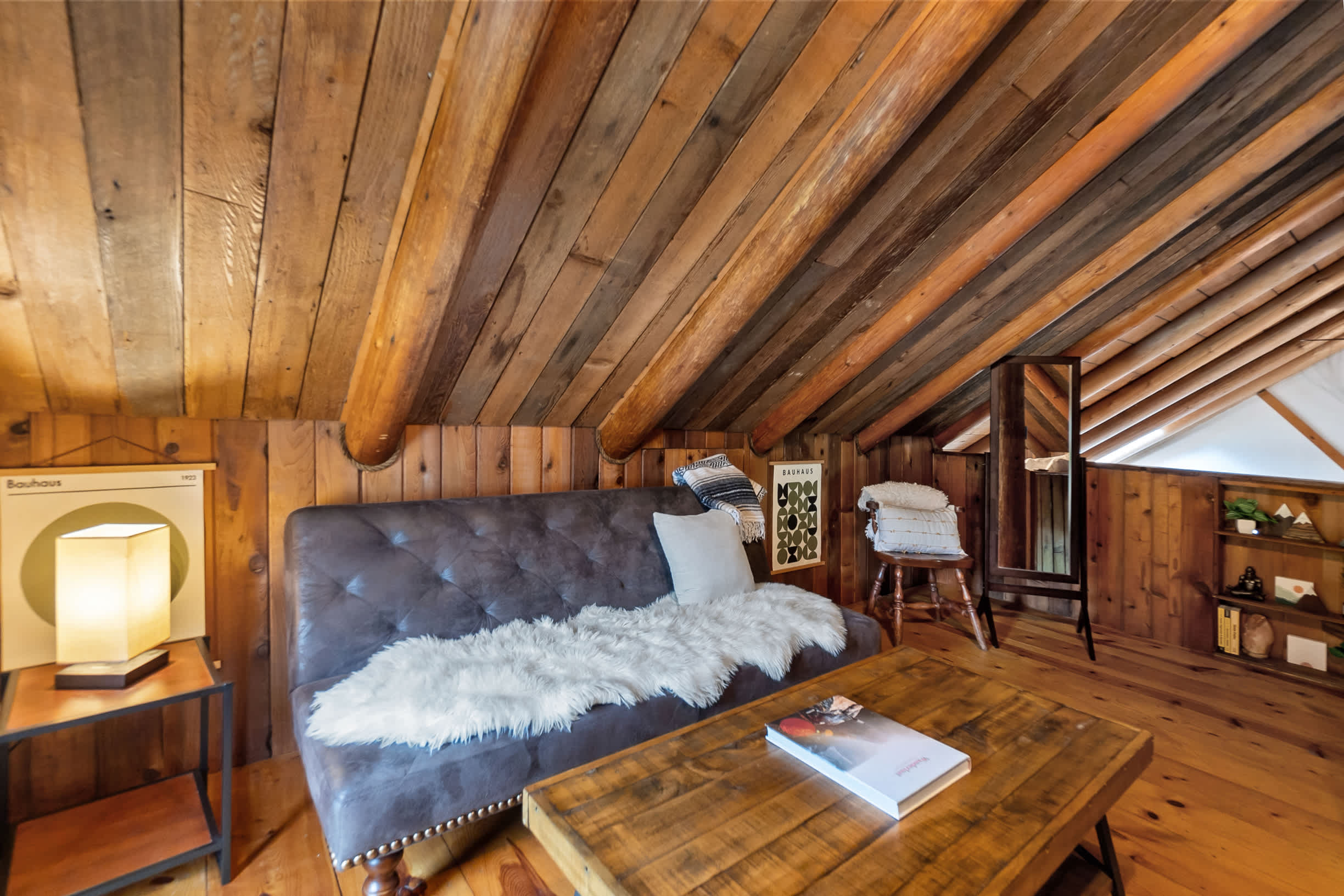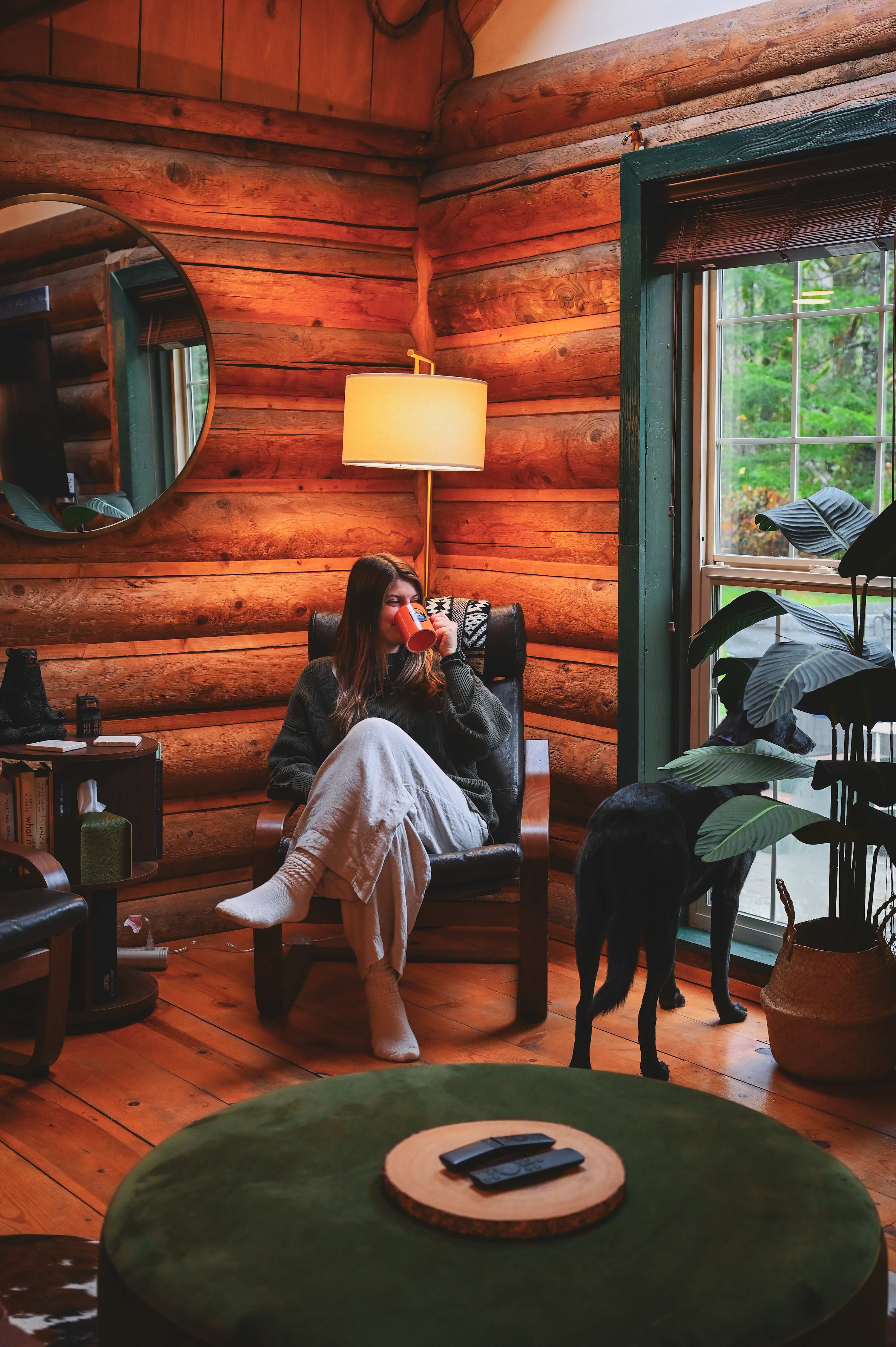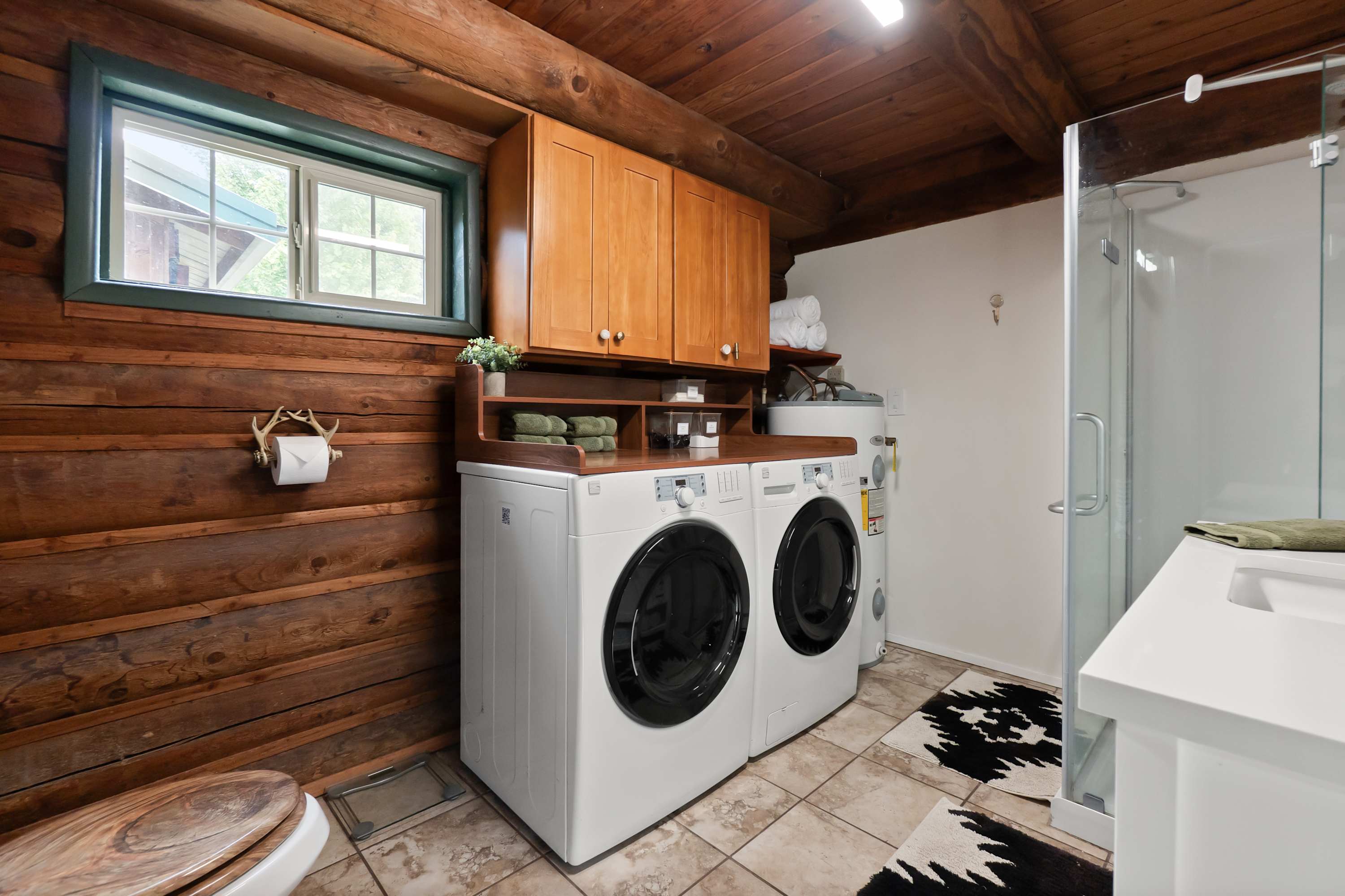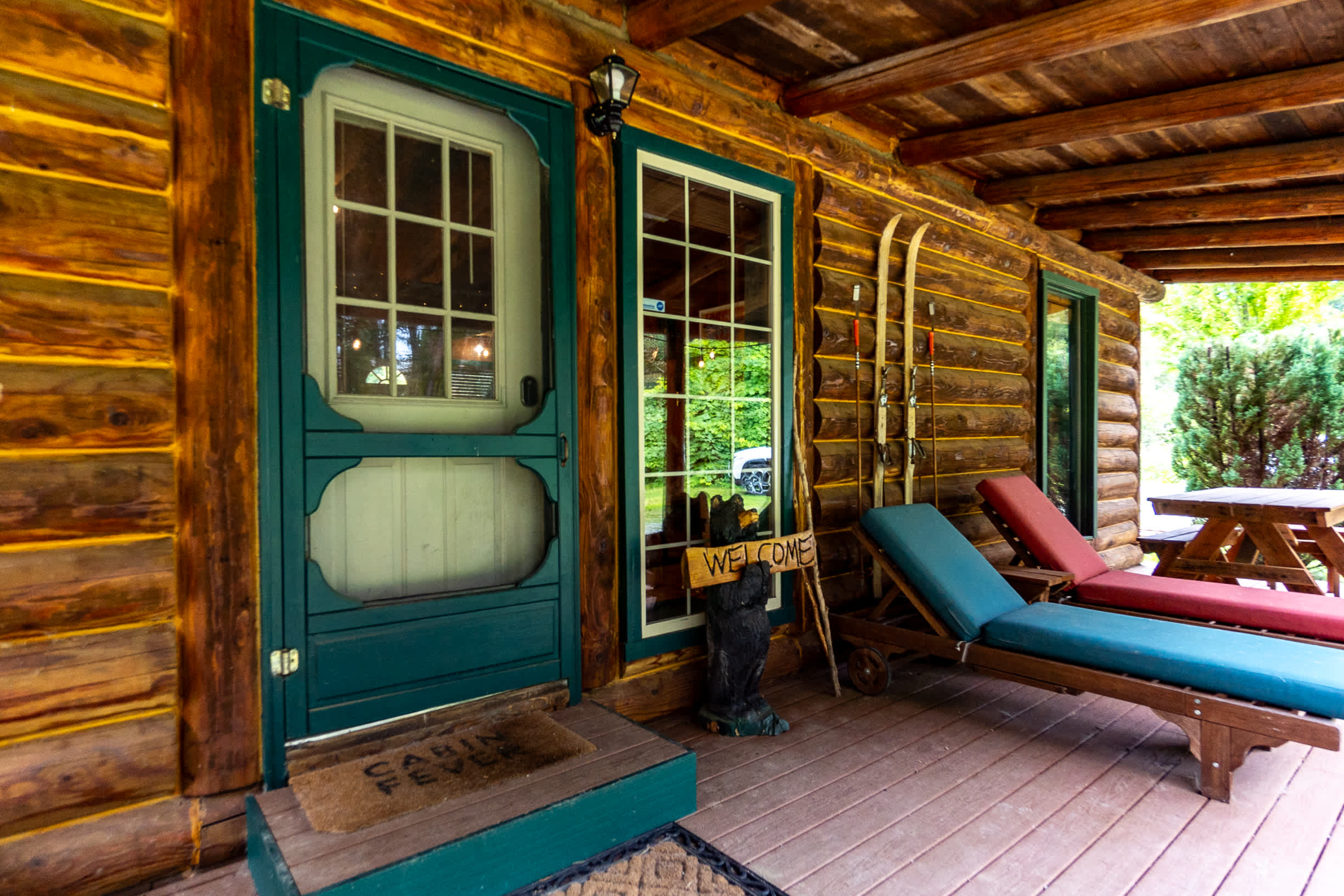 •Rustic log home with comfy couches and beds (expect some lived-in charm)